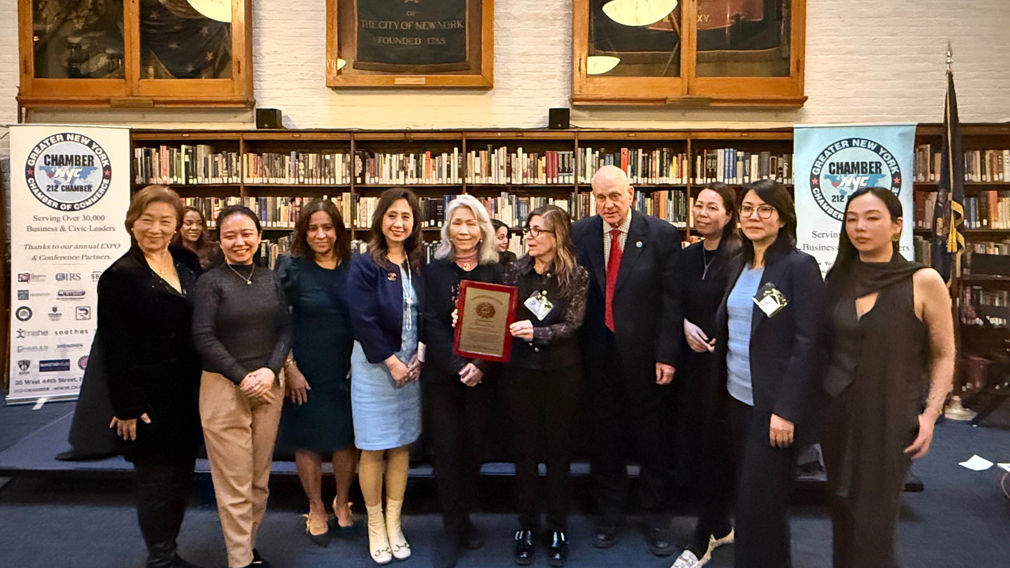 【纽约讯】2026年3月25日,大纽约商会在曼哈顿中城240年历史的总商会图书馆(General Society Library)举办了一年一度的“女性历史月”庆祝晚会。此次盛会汇聚了商界领袖、政府官员、企业家及社区倡导者,共同度过了一个充满欢乐气氛的夜晚,旨在表彰那些凭借卓越的领导力与奉献精神,持续塑造着纽约乃至更广阔世界的杰出女性。 亚裔女性商会(AAWCC)在联合创始人兼现任会长 Anna Zhu 的带领下,组织商会会员共同出席了大纽约商会2026年度晚会。 当晚,美国小企业管理局(SBA)的 Man-Li Lin 女士、纽约市议会议长 Julie Menin 女士等杰出人士接受大会了表彰。 随后的特别颁奖环节,SBA(美国小企业管理局)官员 Manli Guo(郭曼丽) 与亚裔女性商会会长 Anna Zhu 共同登台,为大纽约商会执行总监 Helena Natt 颁发“女性历史月荣誉奖(Women’s History Month Award 2026)”,以表彰她在推动商业社区发展、促进多元融合以及女性领导力方面所做出的卓越贡献。 此次获奖不仅是对Helena Natt个人领导力的高度认可,更体现了女性在商业与社会发展中的重要角色与持续影响力。 亚裔女性商会始终致力于搭建一个集资源整合、政府对接与女性成长为一体的高端平台,通过不断链接优秀女性企业家与社会各界资源,助力更多女性实现自我价值,提升社会影响力。 未来,AAWCC将继续与政府机构及各大组织紧密合作,持续推动女性企业家发展,赋能社区,携手共建更加多元、包容与繁荣的商业生态。 大纽约商会(Greater New York Chamber of Commerce)是美国历史悠久且极具影响力的商业组织之一,总部位于纽约市。作为连接政府、企业与社区的重要桥梁,大纽约商会致力于支持和推动中小企业发展,促进区域经济繁荣。商会通过政策倡导、商业资源对接、企业培训及大型商业活动,为会员企业提供全方位支持。多年来,大纽约商会积极与政府机构(包括美国小企业管理局SBA等)紧密合作,在商业政策、政府资源获取及企业发展指导方面发挥重要作用。 商会汇聚来自各行各业的企业家与行业领袖,涵盖金融、法律、医疗、房地产、科技及创新领域,是纽约地区最具活力与影响力的商业平台之一。