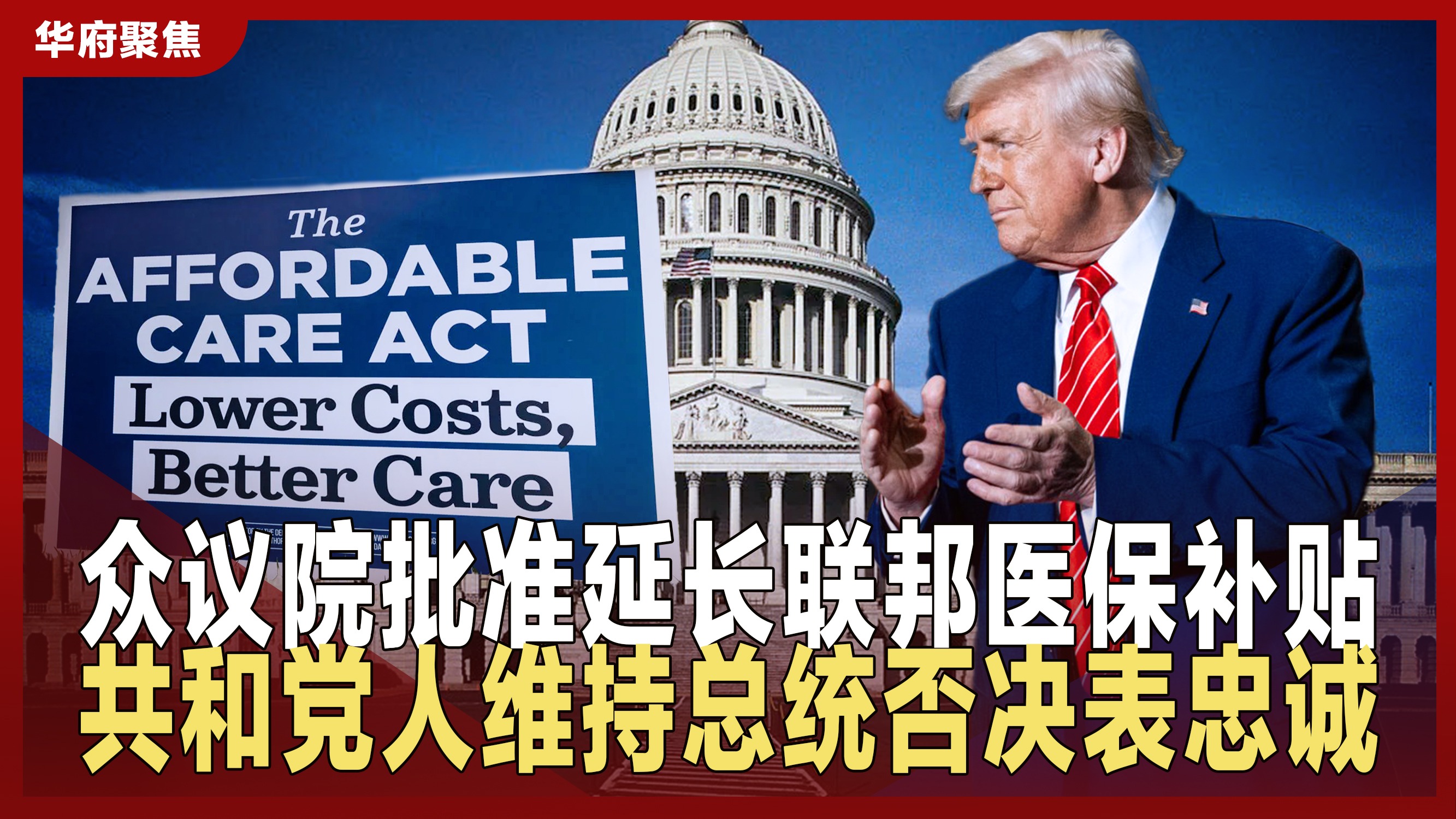 众议院批准延长联邦医保补贴 共和党人维持总统否决表忠诚