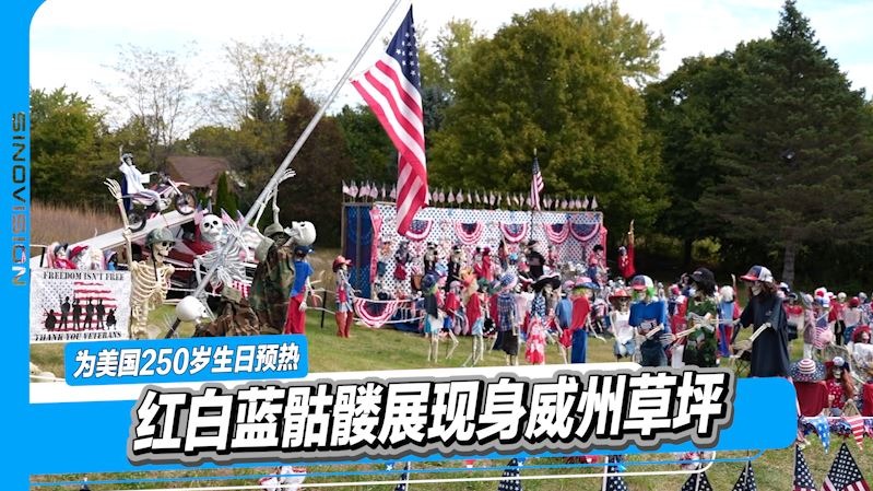 红白蓝骷髅展现身威州草坪 为美国250岁生日预热