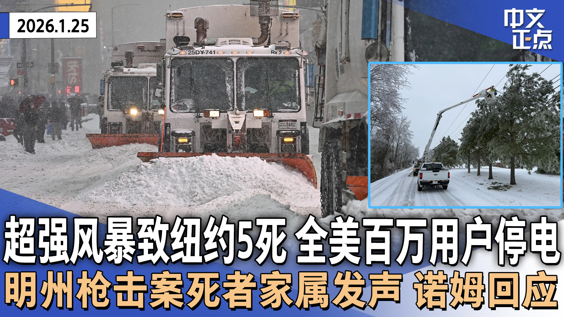 超强风暴致纽约5死 全美百万用户停电|明州枪击案死者家属发声|沃尔兹反驳联邦对枪击案定性|民主党再威胁政府停摆|梅拉尼娅纪录片白宫首映|霍诺德91分钟徒手登顶台北101《中文正点》26.1.25