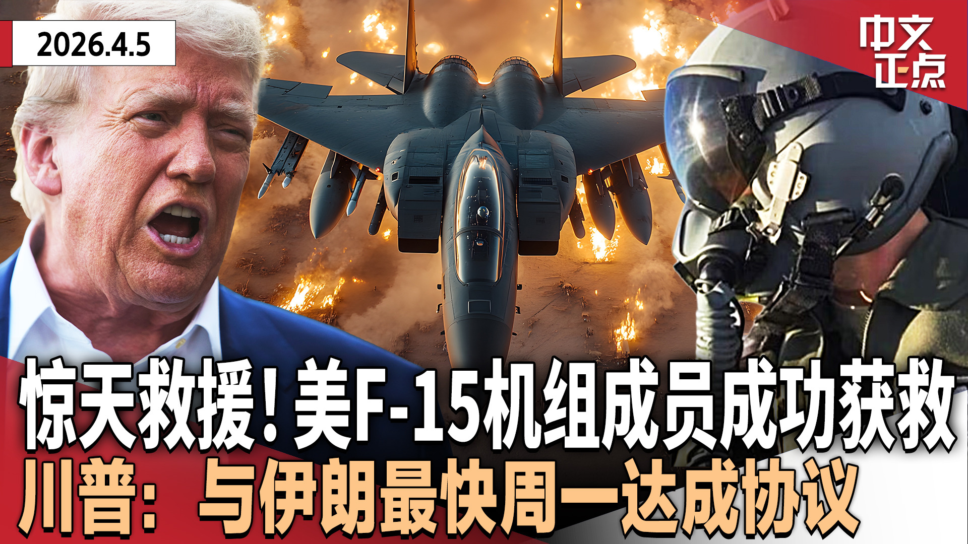 美军成功营救F-15机组成员 川普称与伊朗最快周一达成协议|NASA回应飞船厕所故障|白宫外突发枪击|“第三国遣返”再添非洲目的地|盖洛普:全球对中国认可度超过美国《中文正点》2026.4.5