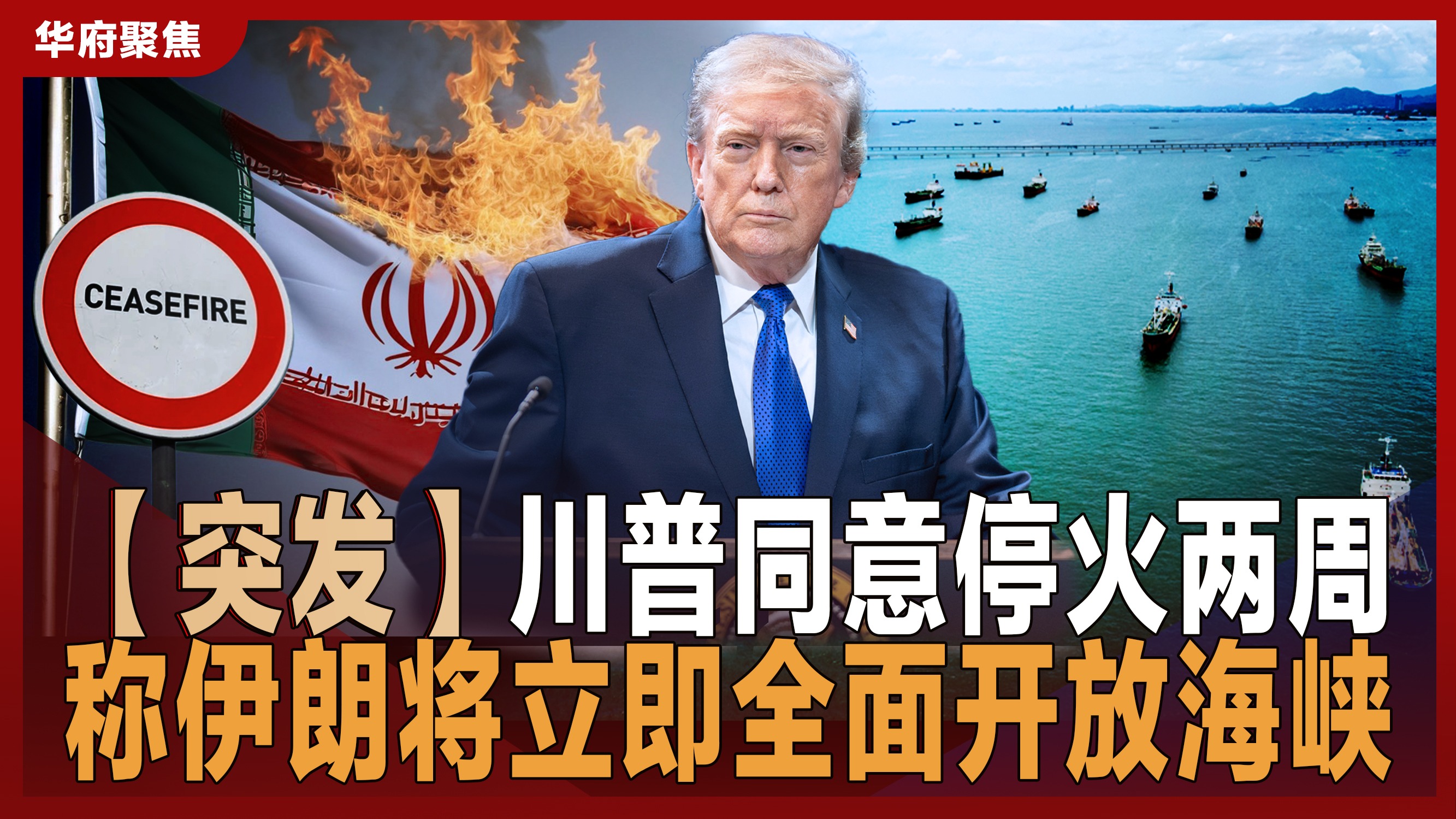 【突发】川普同意停火两周 称伊朗将立即全面开放海峡