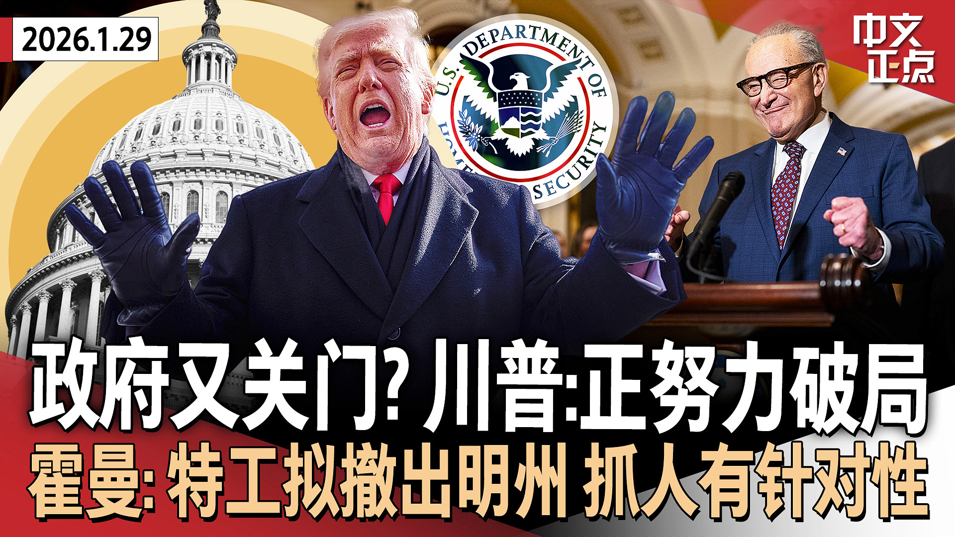 反ICE浪潮升级 边境巡逻队长离开明州 川普力挺国安部长诺姆|涉嫌社媒上“雇人杀川普” 这州女子被起诉|川普新关税威胁后 韩政府重申对美投资承诺|ICE将现身米兰冬奥会引争议《中文正点》26.1.27