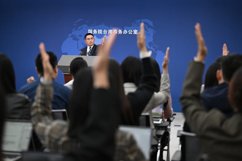 10月15日,国台办发言人陈斌华邀请记者提问。(图片来源:新华社)