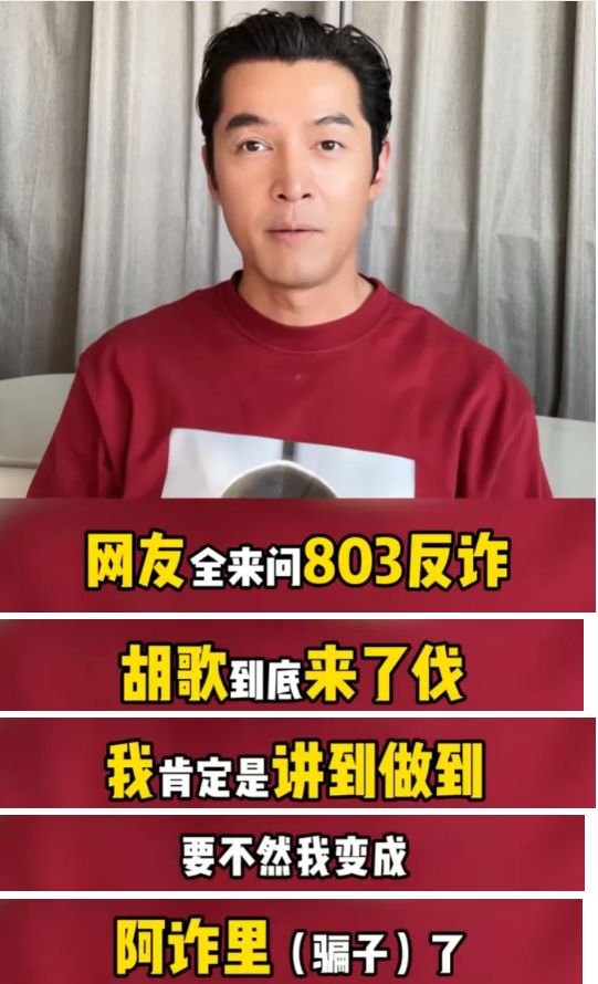 今年7月,上海市反电信网络诈骗中心官方账号更新胡歌现身反诈视频,胡歌在视频中用上海话跟观众打招呼,并说:网友都来问803反诈胡歌到底来了吗?我肯定说到做到,否则我成“阿诈里”(骗子)了。
