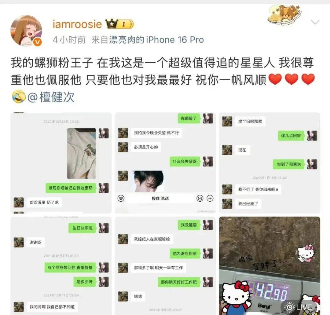 除了晒证据,她还添油加醋地描述细节。说檀健次对她最好,自己还有同款短袖,结果檀健次方很快打脸,说短袖是品牌赞助的工作装备,跟她半毛钱关系没有;吐槽林更新把自己当玩物,通过女性朋友认识后又被欺骗,害得自己患上抑郁症;还深情表白范丞丞,称对方是“青春里唯一喜欢的男孩”,晒出的聚会照片却被范丞丞工作室拆穿是公共活动的抓拍,两人只是点头之交。