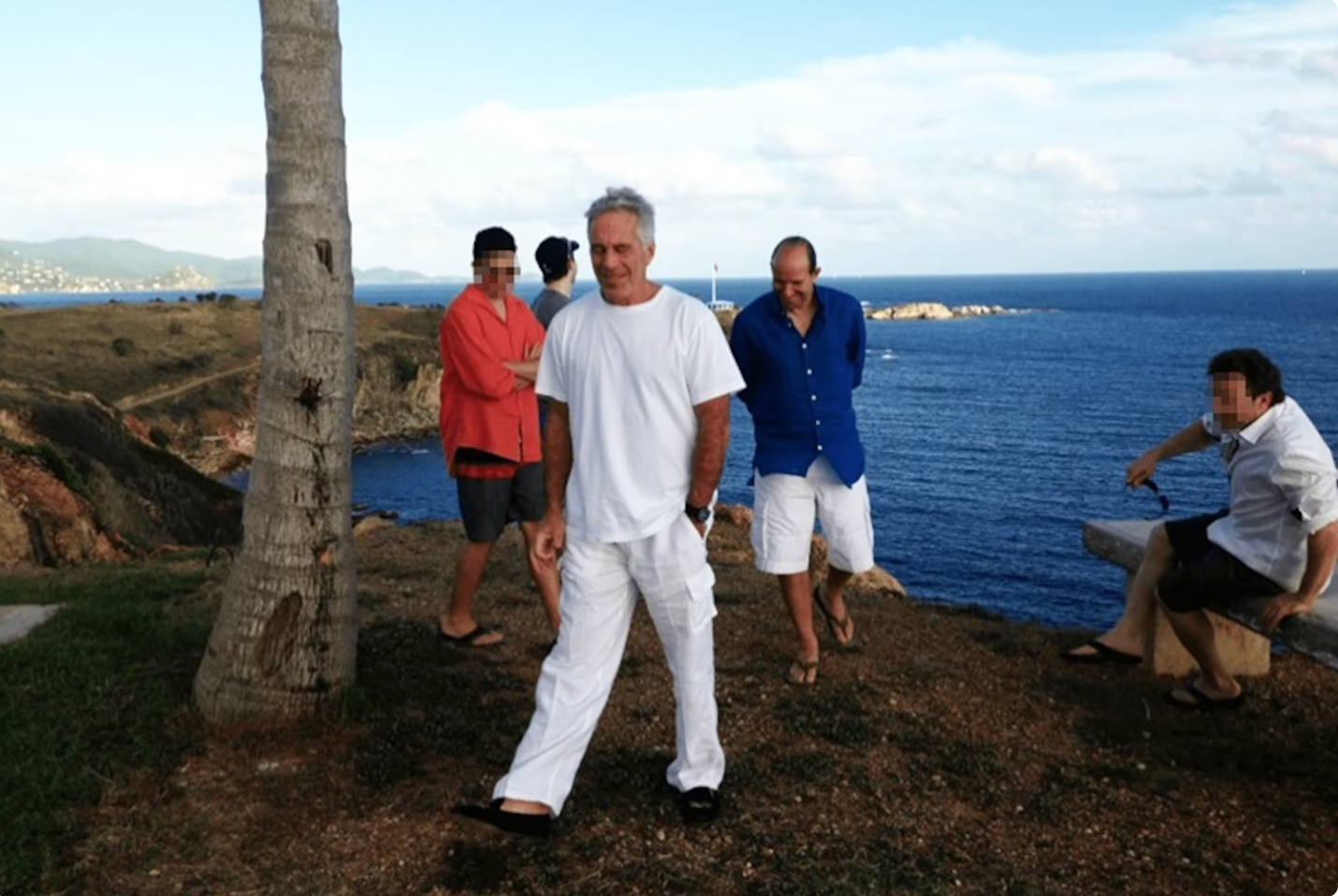 而在这张被重新发布的照片中,爱泼斯坦、身穿蓝色上衣和白色短裤的卢特尼克、以及另外3人,共同出现在爱泼斯坦的私人岛屿——小圣詹姆斯岛(Little Saint James)的西南角。