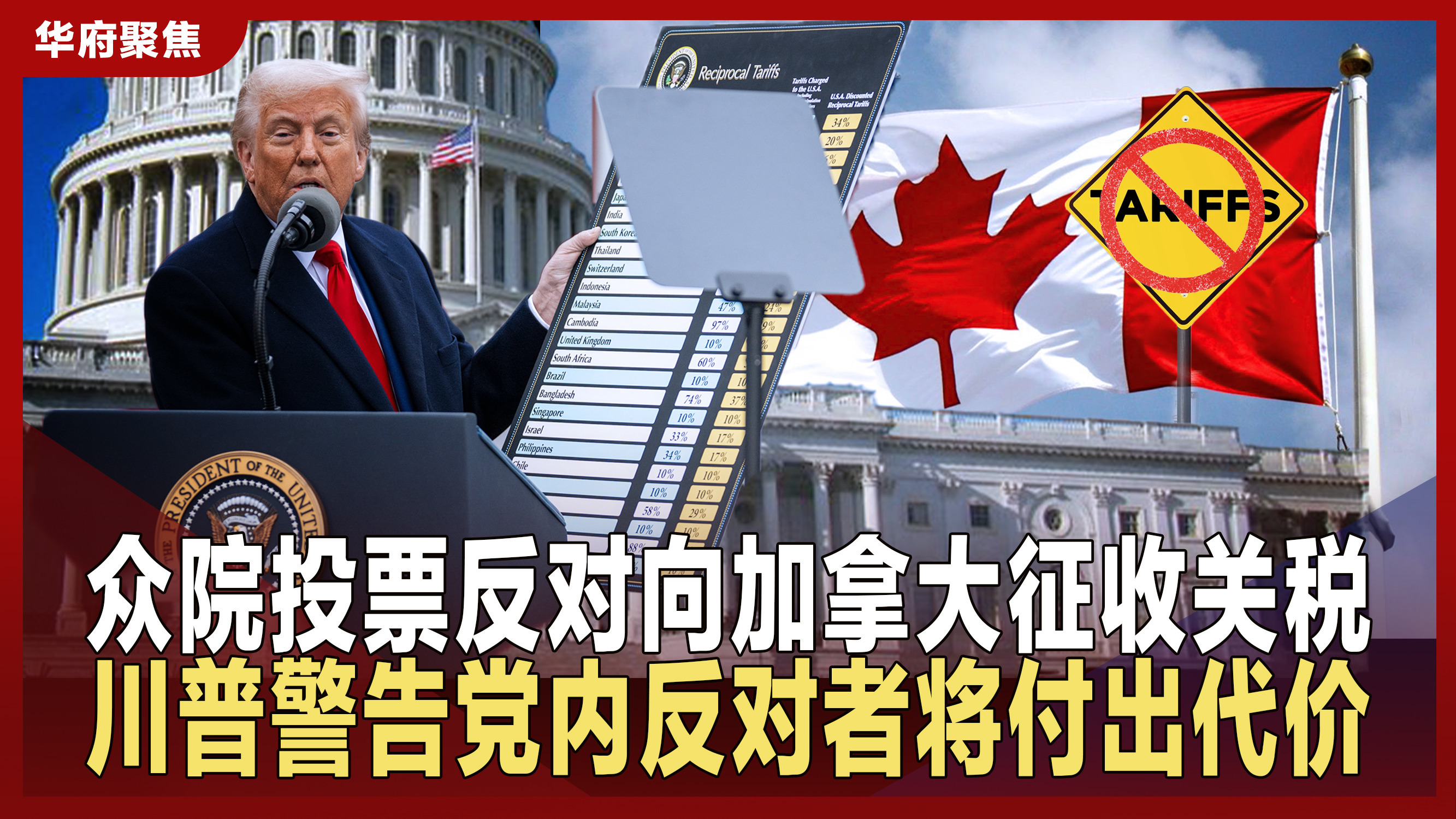 众院投票反对向加拿大征收关税 川普警告党内反对者将付出代价