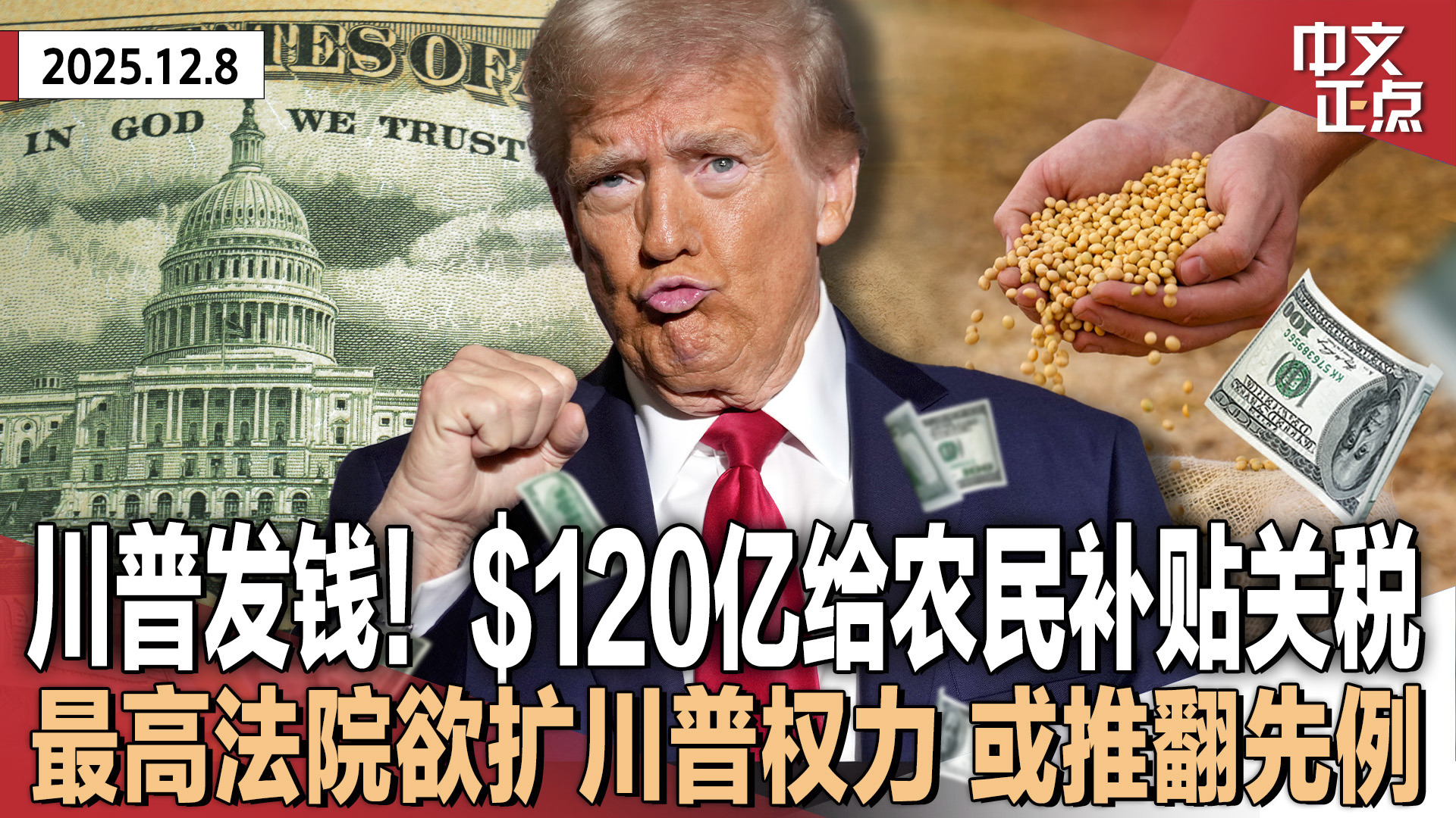 贸易战重创美国农民 川普宣布发$120亿农业援助|最高法院欲扩大川普“免职”权 或推翻90年先例|川普对泽伦斯基“失望”后 欧洲再为乌站台|曼达尼称移民有权不配合ICE行动《中文正点》25.12.8