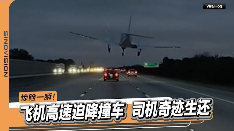 惊险一瞬!飞机高速迫降撞车 司机奇迹生还