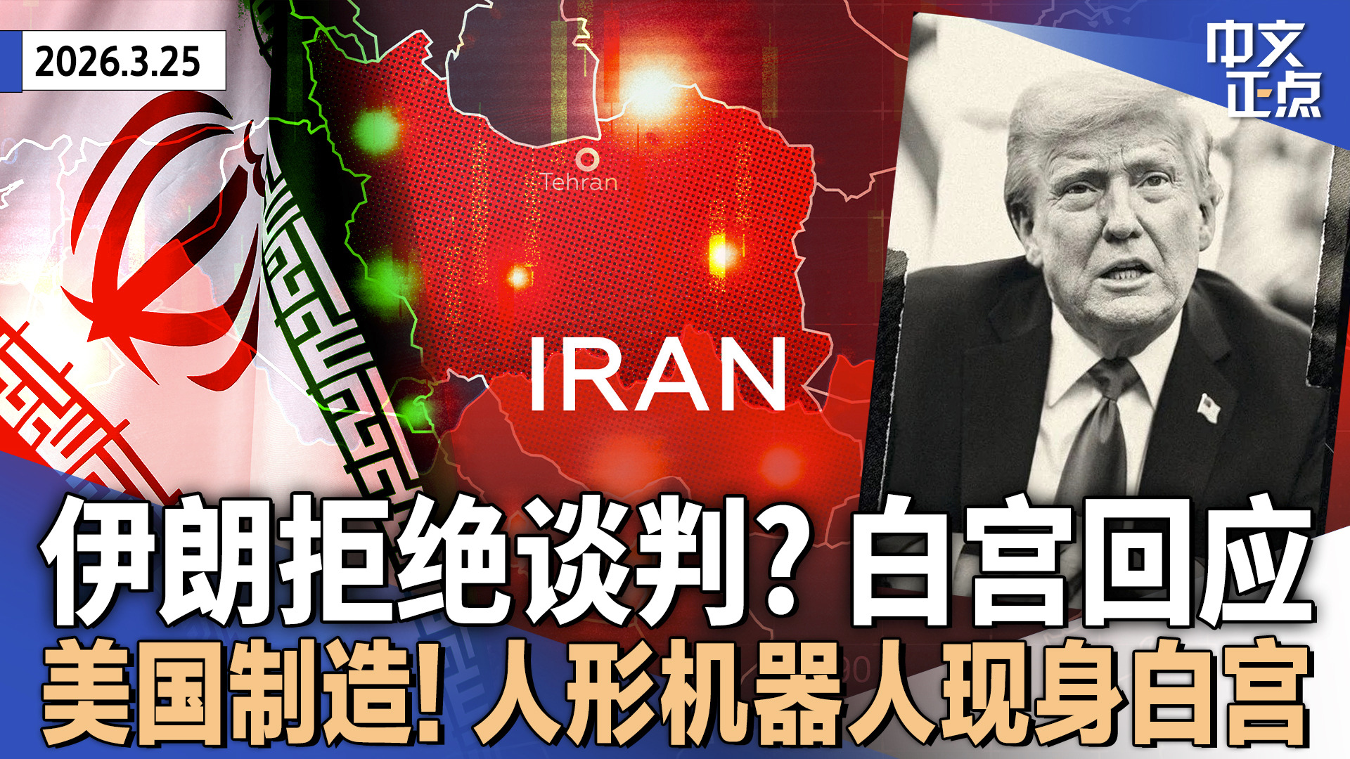伊朗拒绝美国“15点停战计划” 白宫称谈判仍在继续|川普宣布5月中旬访华|民主党人赢下佛州特别选举 “翻蓝”海湖庄园选区 |美国制造!人形机器人陪同梅拉尼娅亮相白宫《中文正点》26.3.25