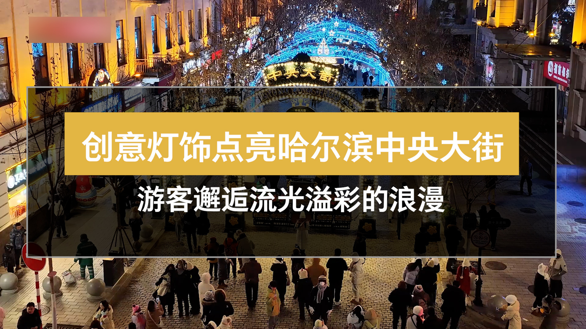 创意灯饰点亮哈尔滨中央大街 游客邂逅流光溢彩的浪漫